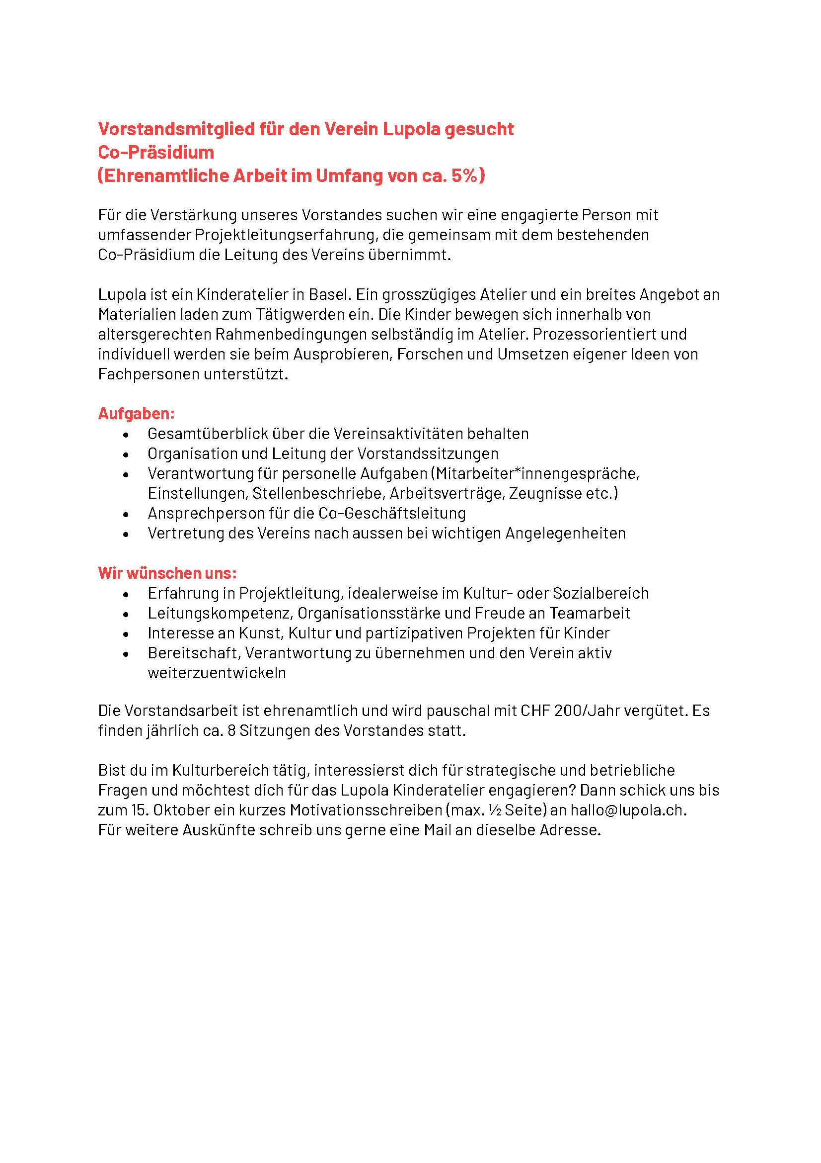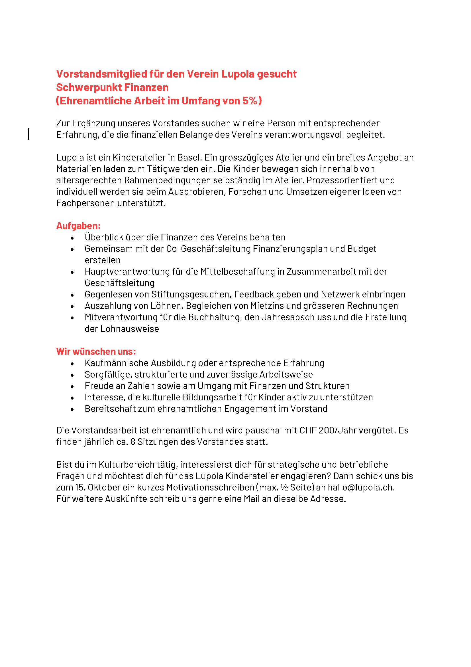 Momentan sind wir auf der Suche nach Personen, die uns im Präsidium und im Bereich Finanzen unterstützt.